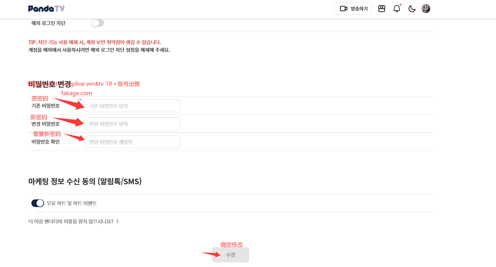 -> 韩国账号pandatv 登录改密教程