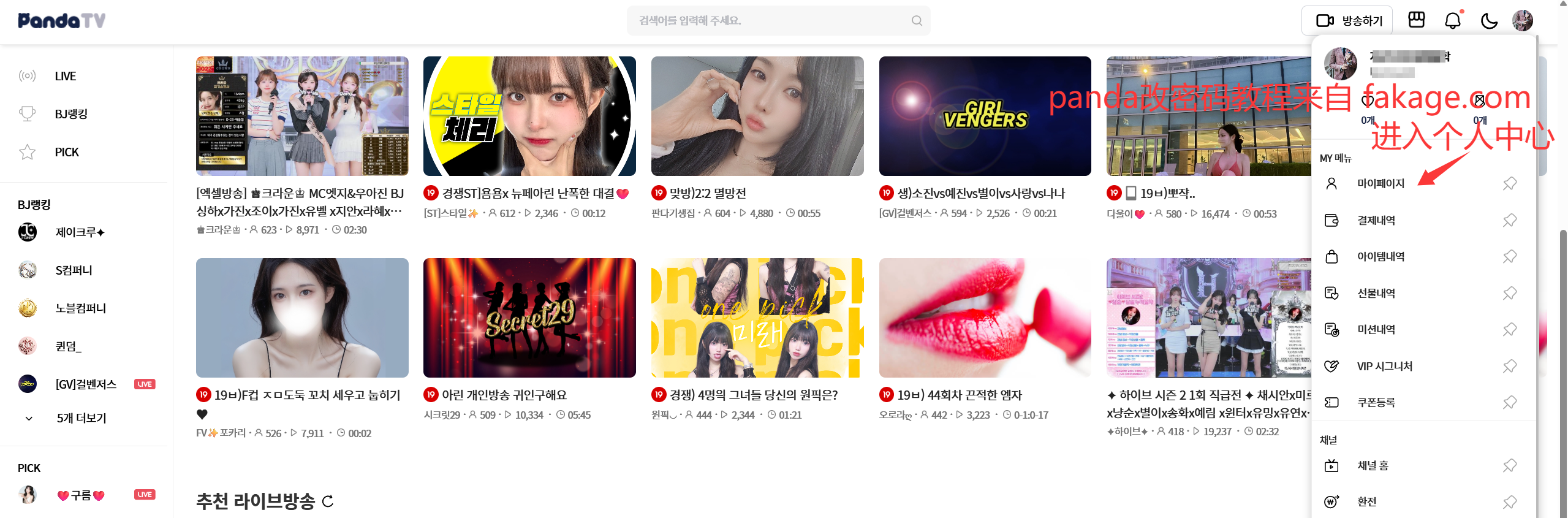 韩国账号pandatv 登录改密教程